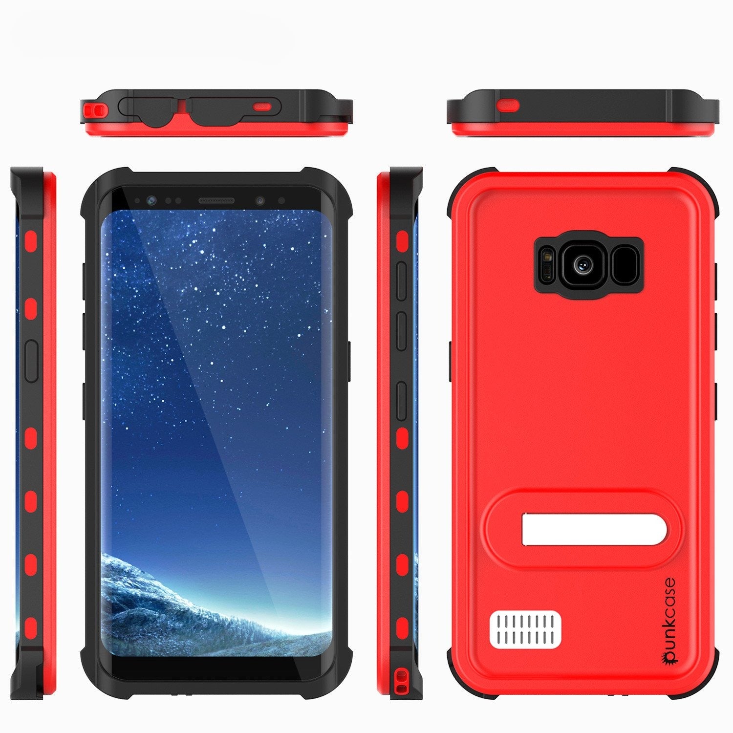 Galaxy S8 Plus Waterproof Case, Punkcase [KickStud Series] [Slim Fit] [IP68 Certified] [Shockproof] [Snowproof] Armor Cover W/ Built-In Kickstand + Screen Protector for Samsung Galaxy S8+ [RED]