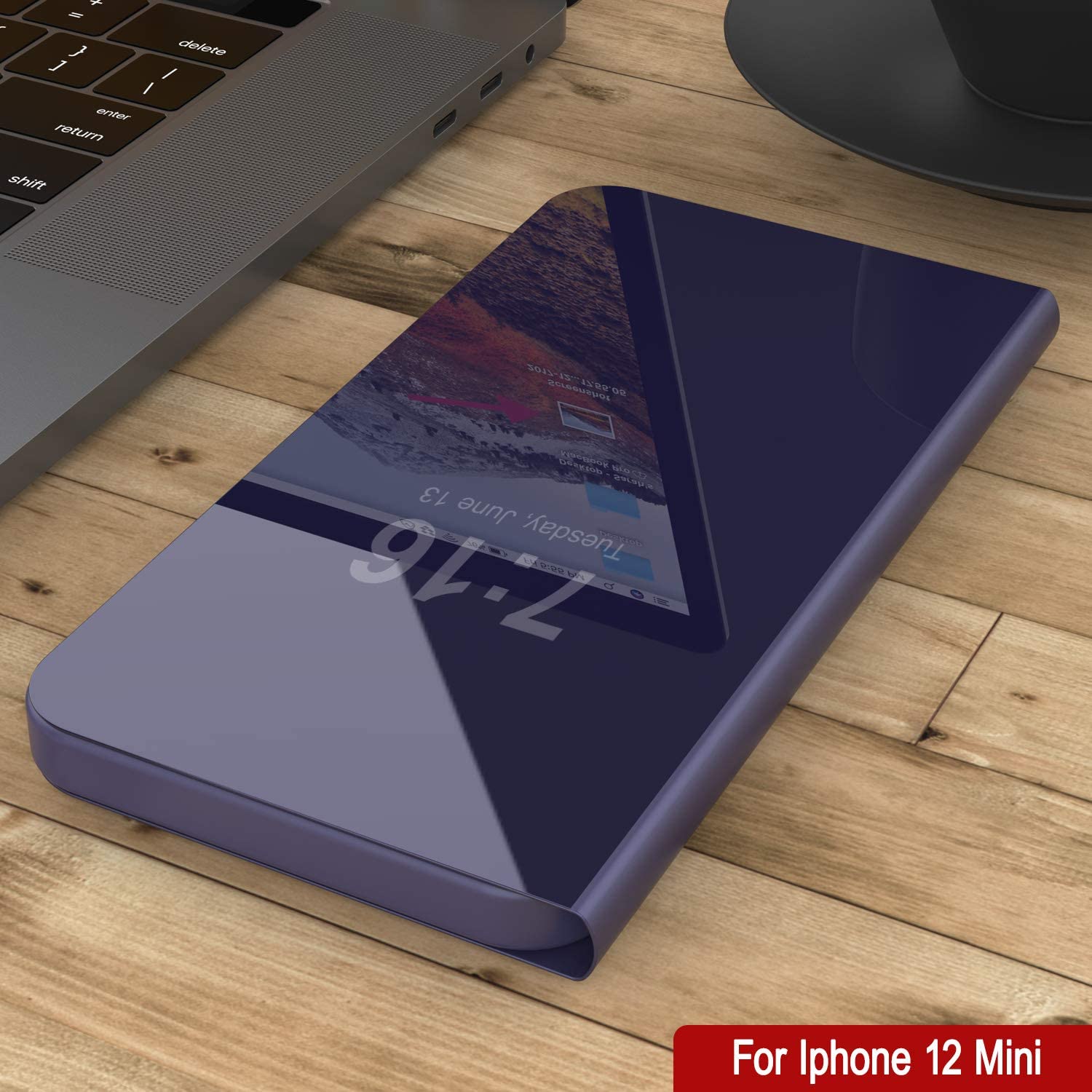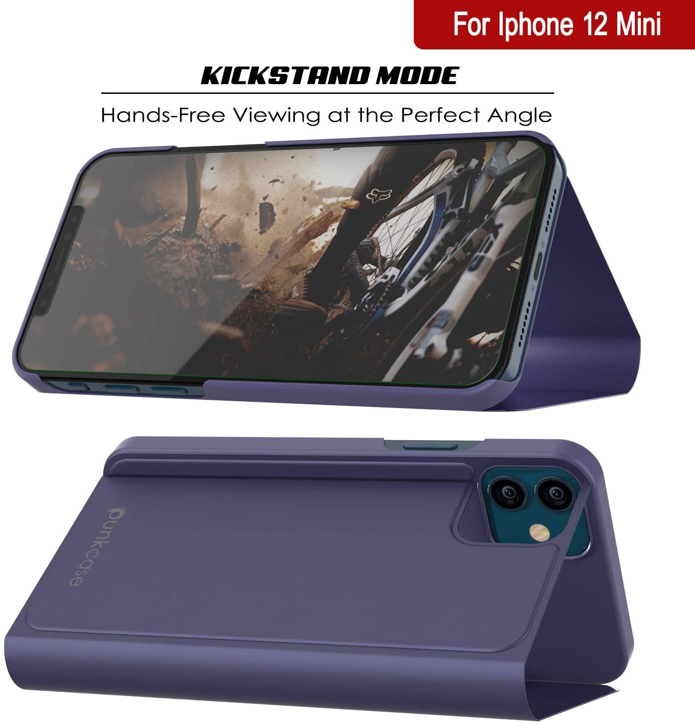 Punkcase iPhone 12 Mini Reflector Case Protective Flip Cover [Purple]