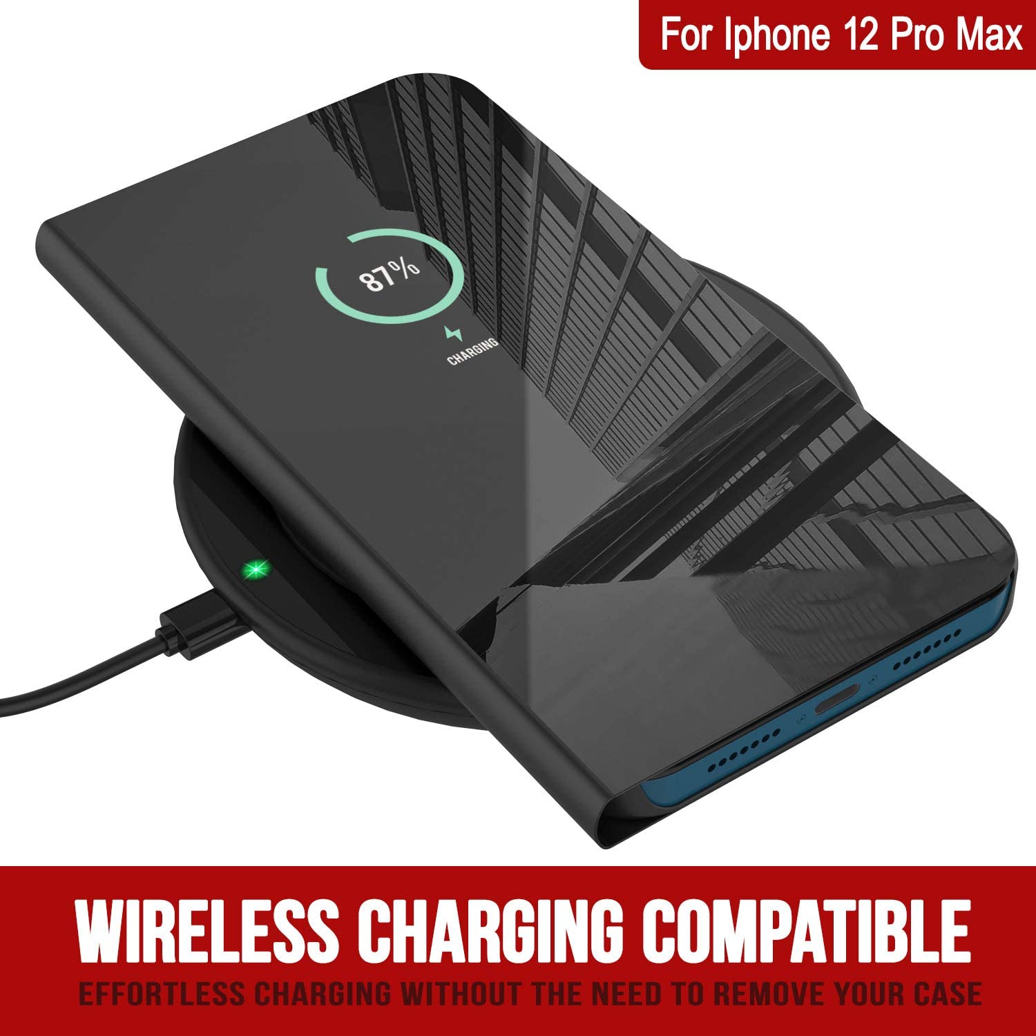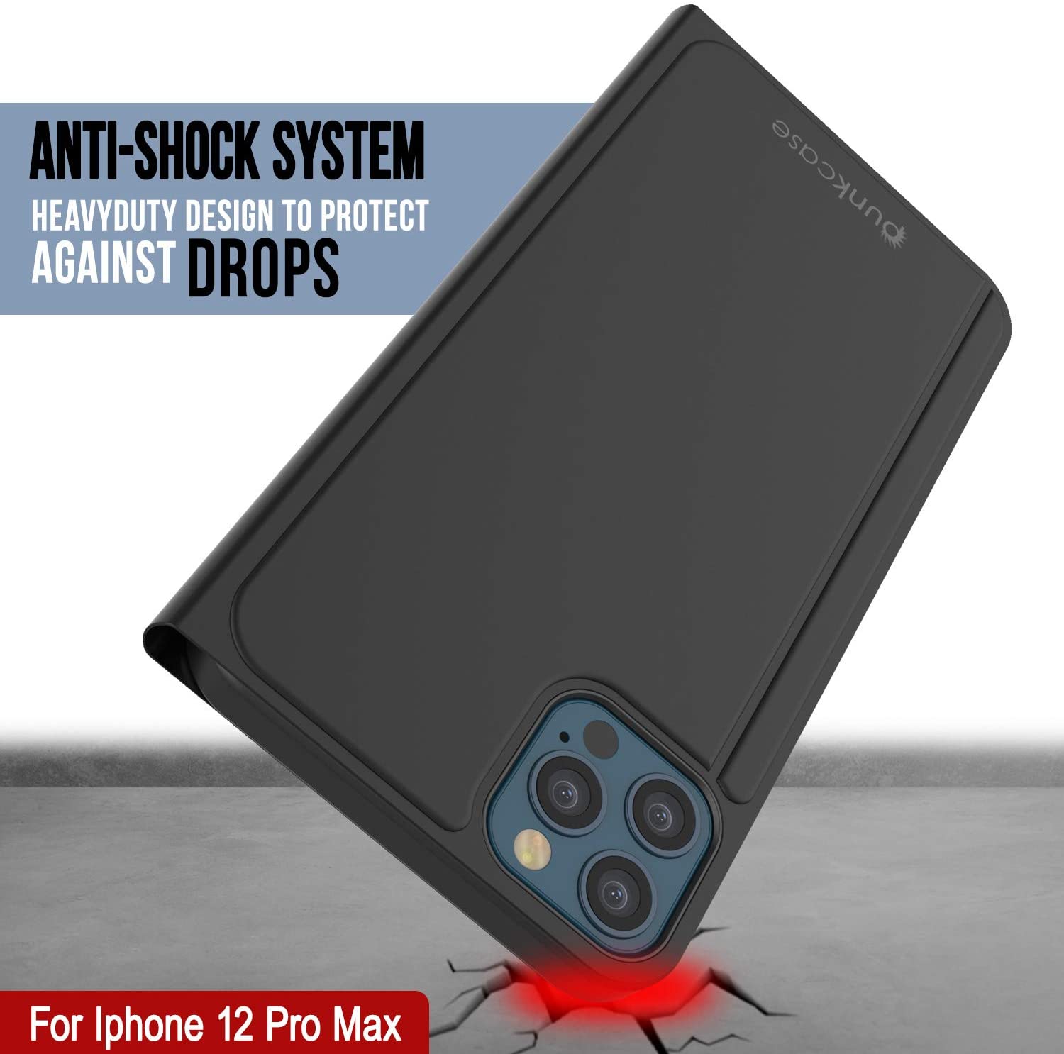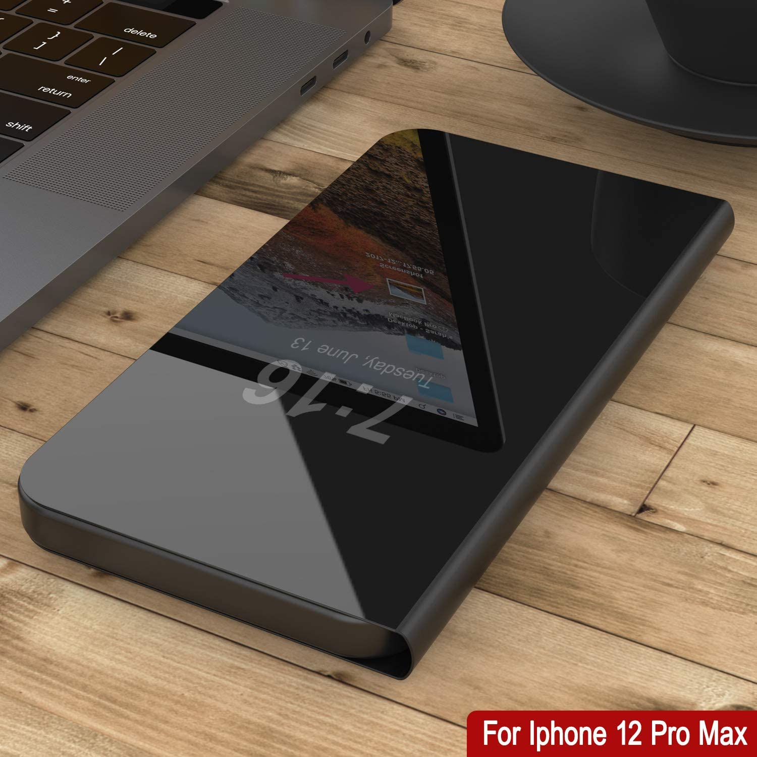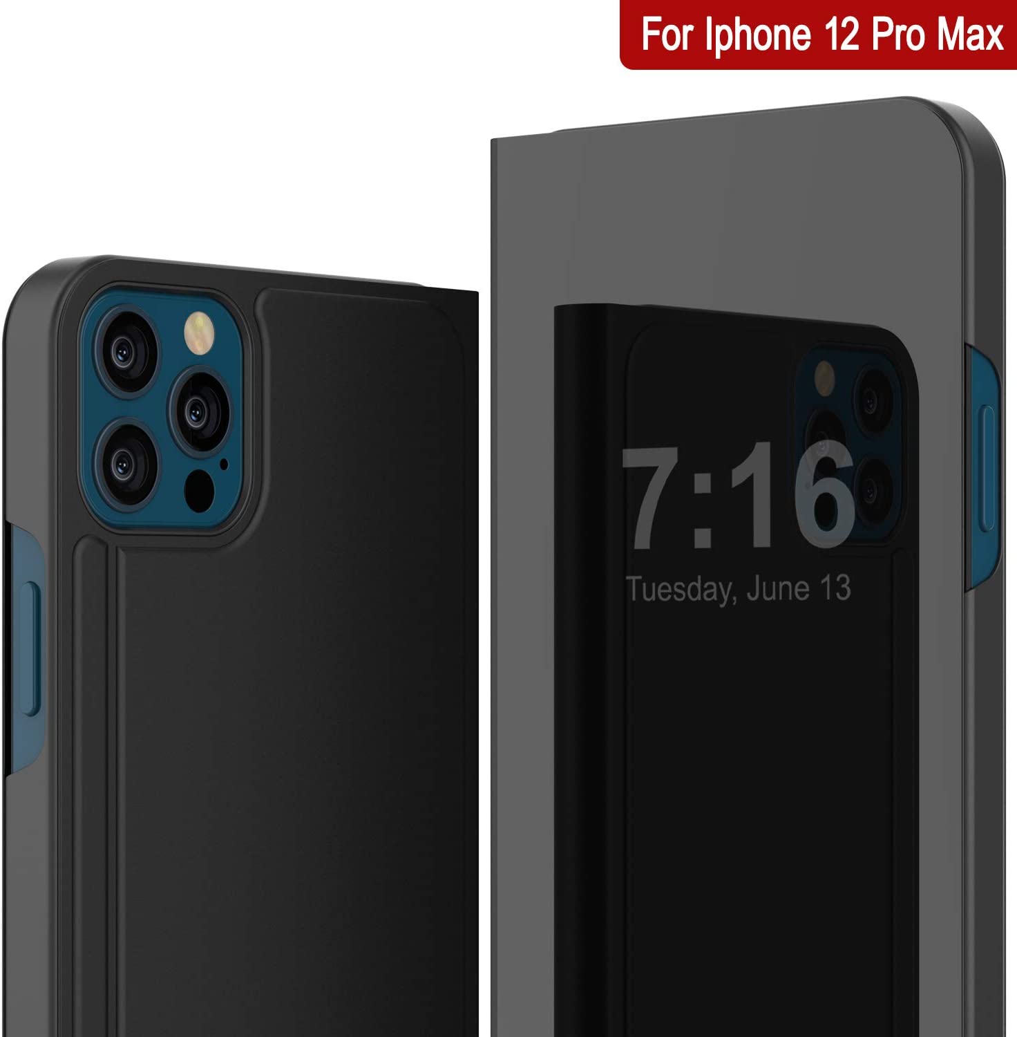 Punkcase iPhone 12 Pro Max Reflector Case Protective Flip Cover [Black