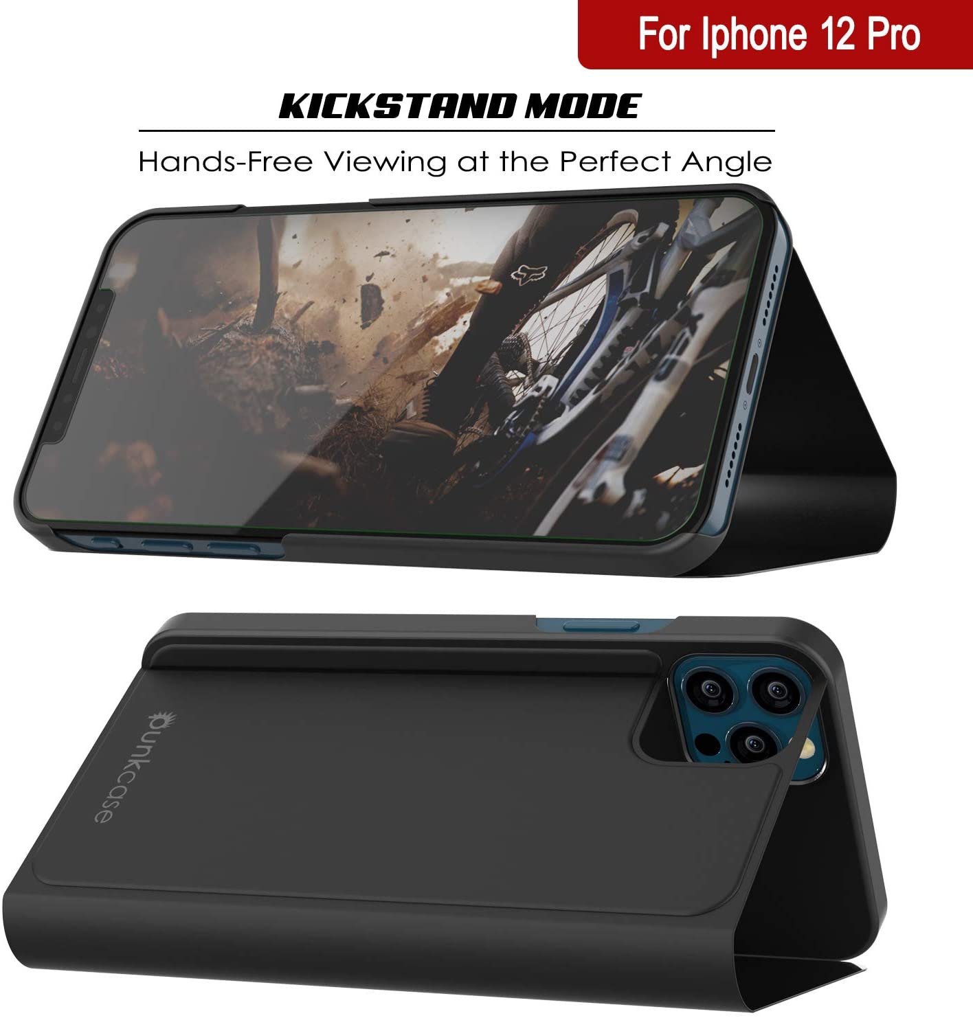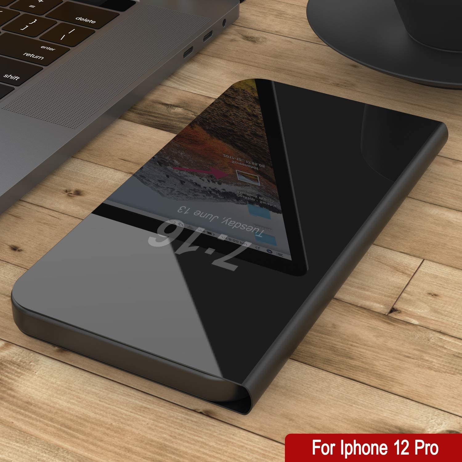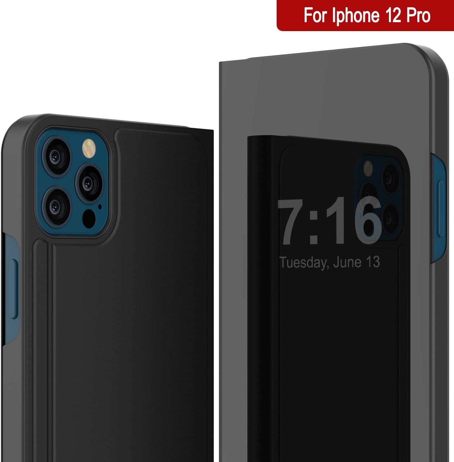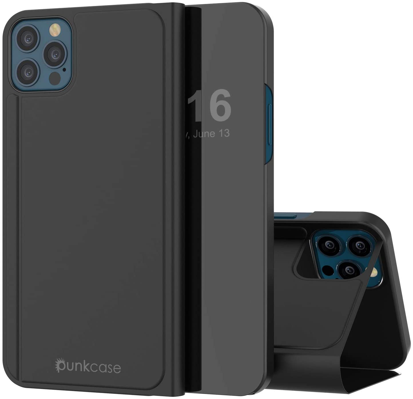 Punkcase iPhone 12 Pro Reflector Case Protective Flip Cover [Black]