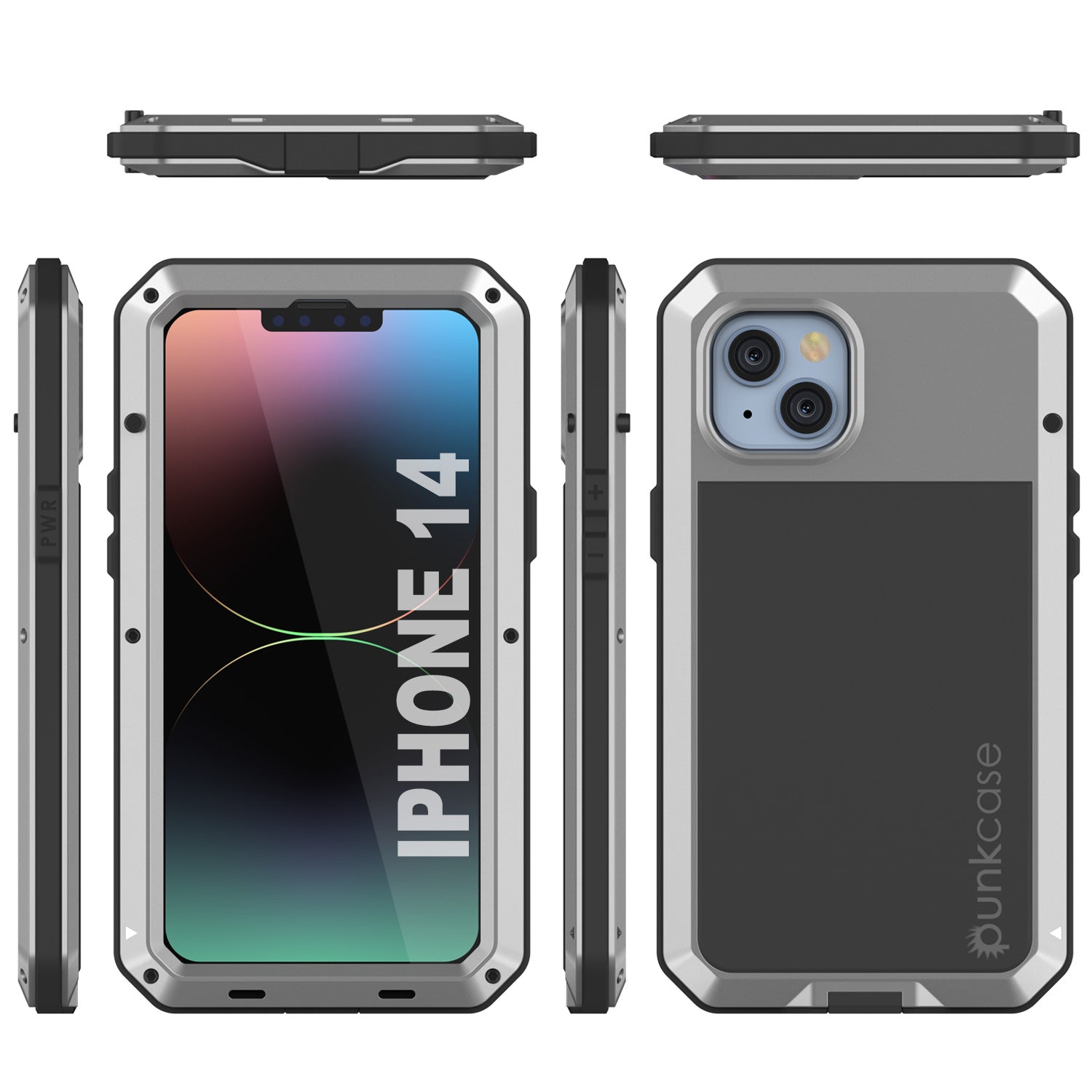 iPhone 14 Metal Case, Heavy Duty Military Grade Armor Cover [shock proof] Full Body Hard [Silver]