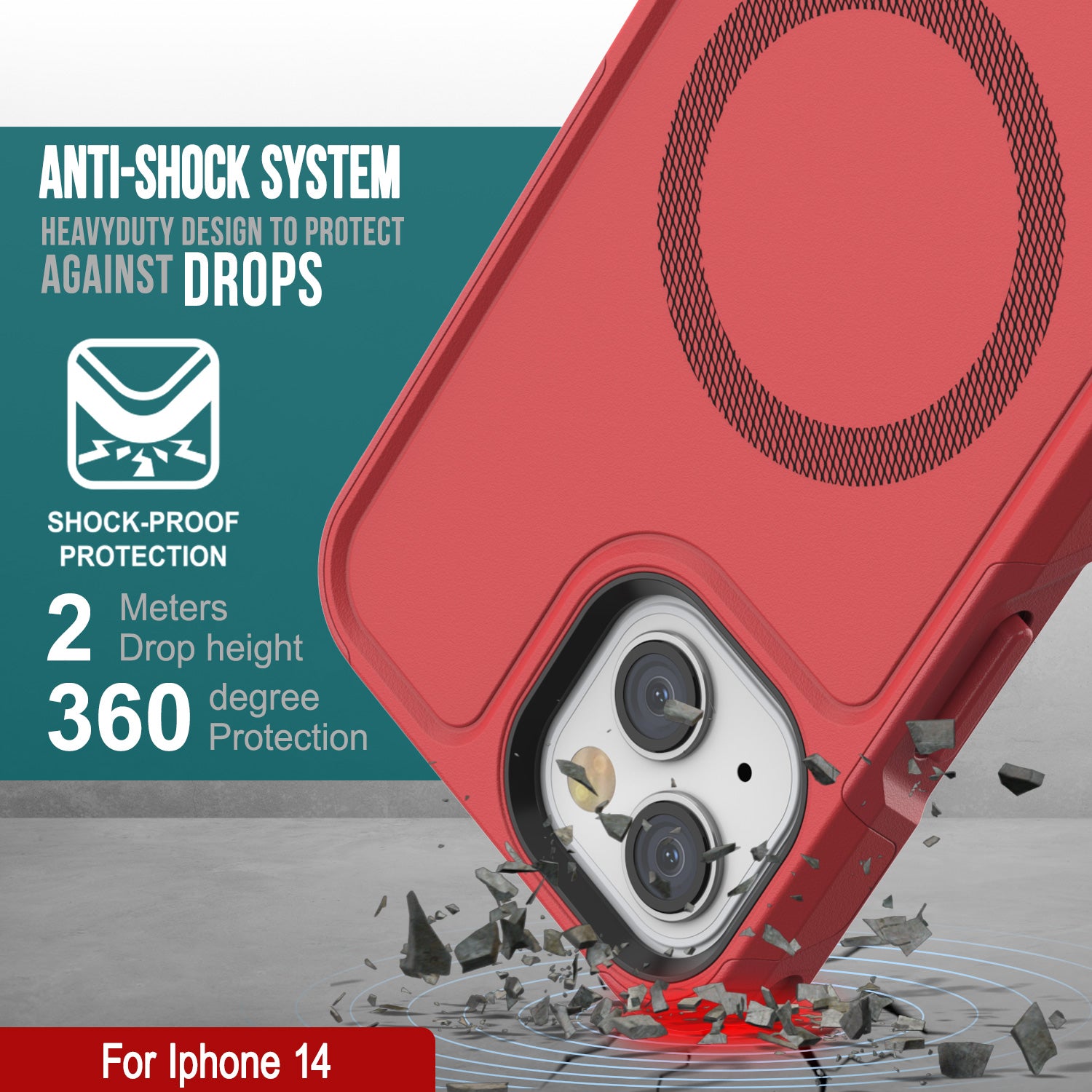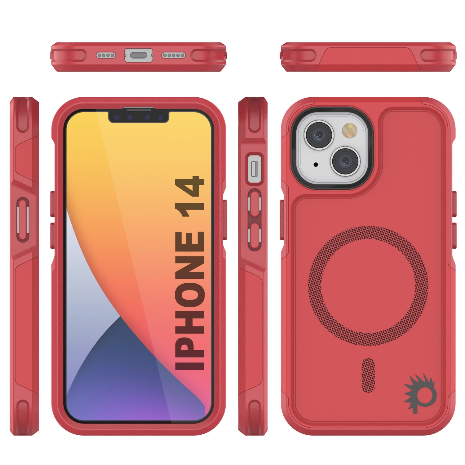 PunkCase iPhone 14 Case, [Spartan 2.0 Series] Clear Rugged Heavy Duty Cover W/Built in Screen Protector [Red]