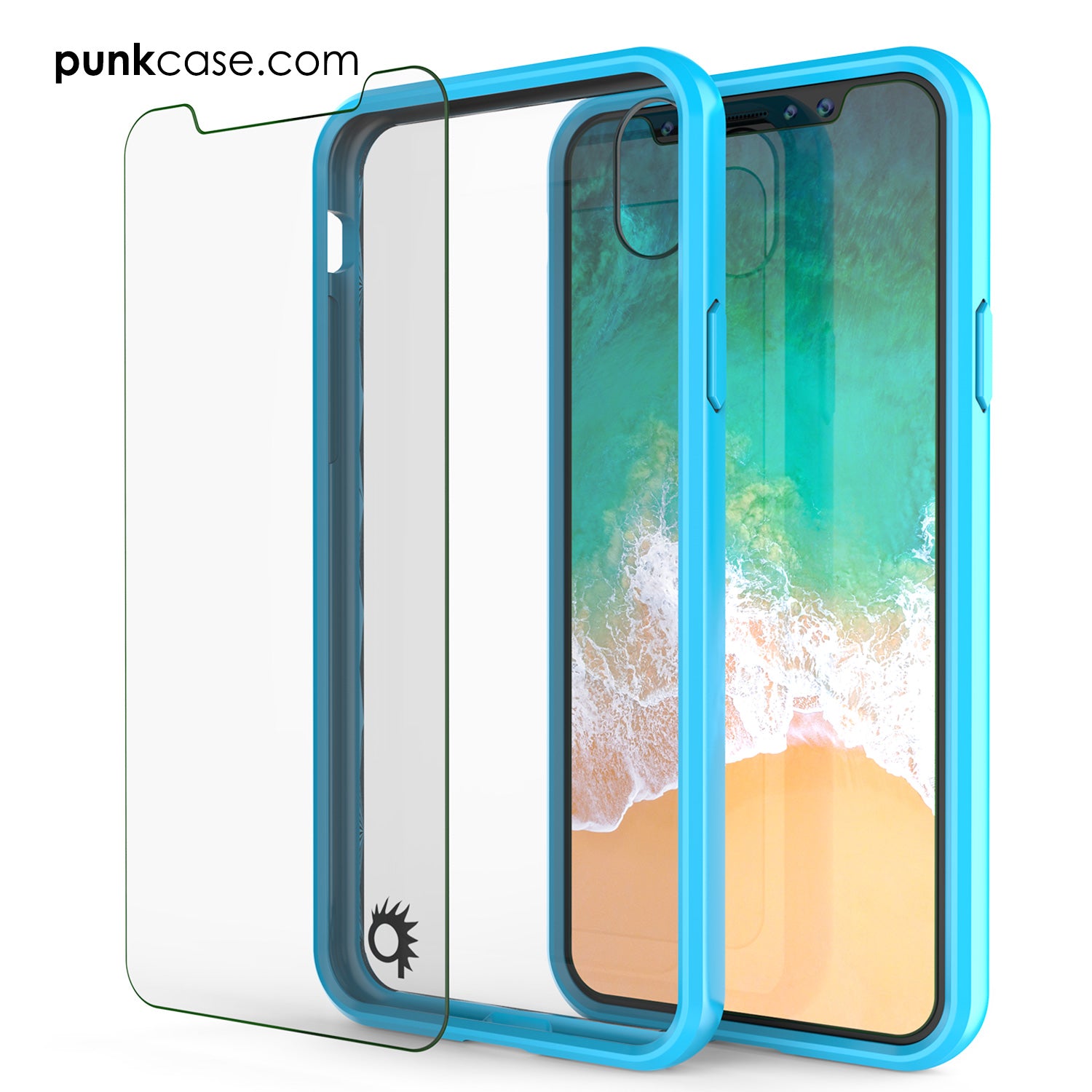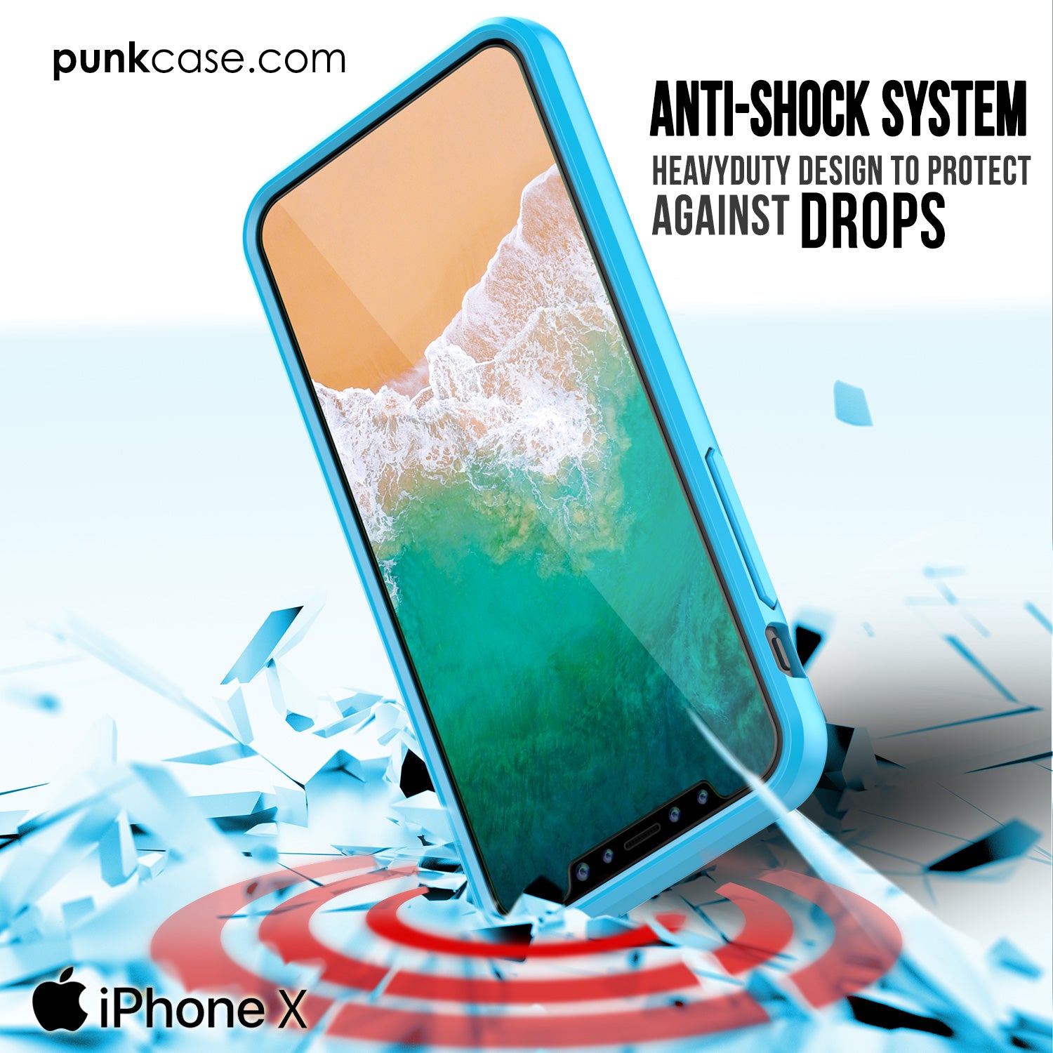 iPhone X Case, PUNKcase [LUCID 2.0 Series] [Slim Fit] Armor Cover W/Integrated Anti-Shock System & Tempered Glass PUNKSHIELD Screen Protector for Apple iPhone X [Light Blue]