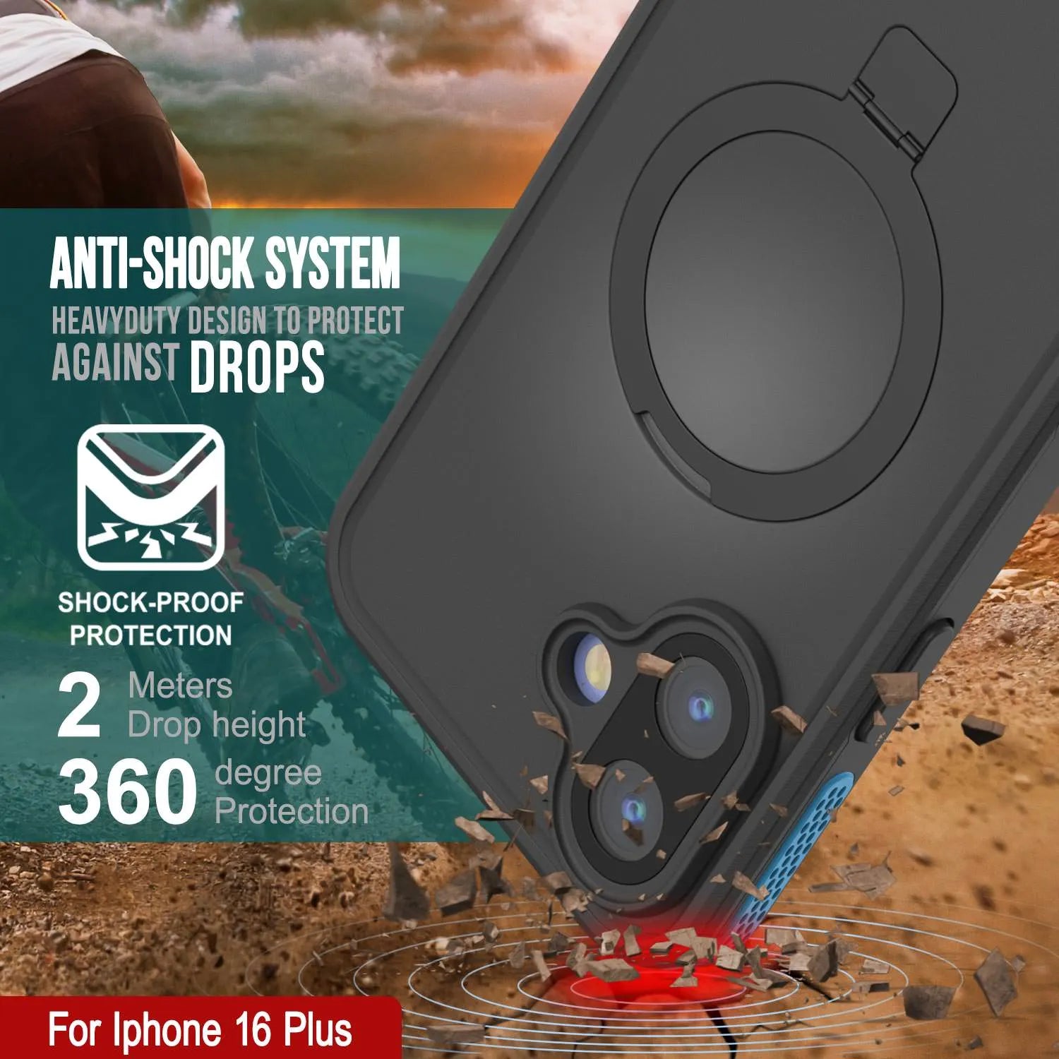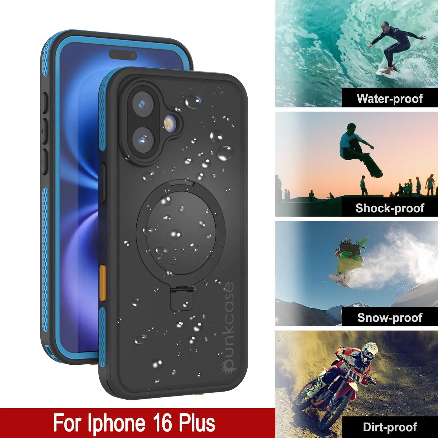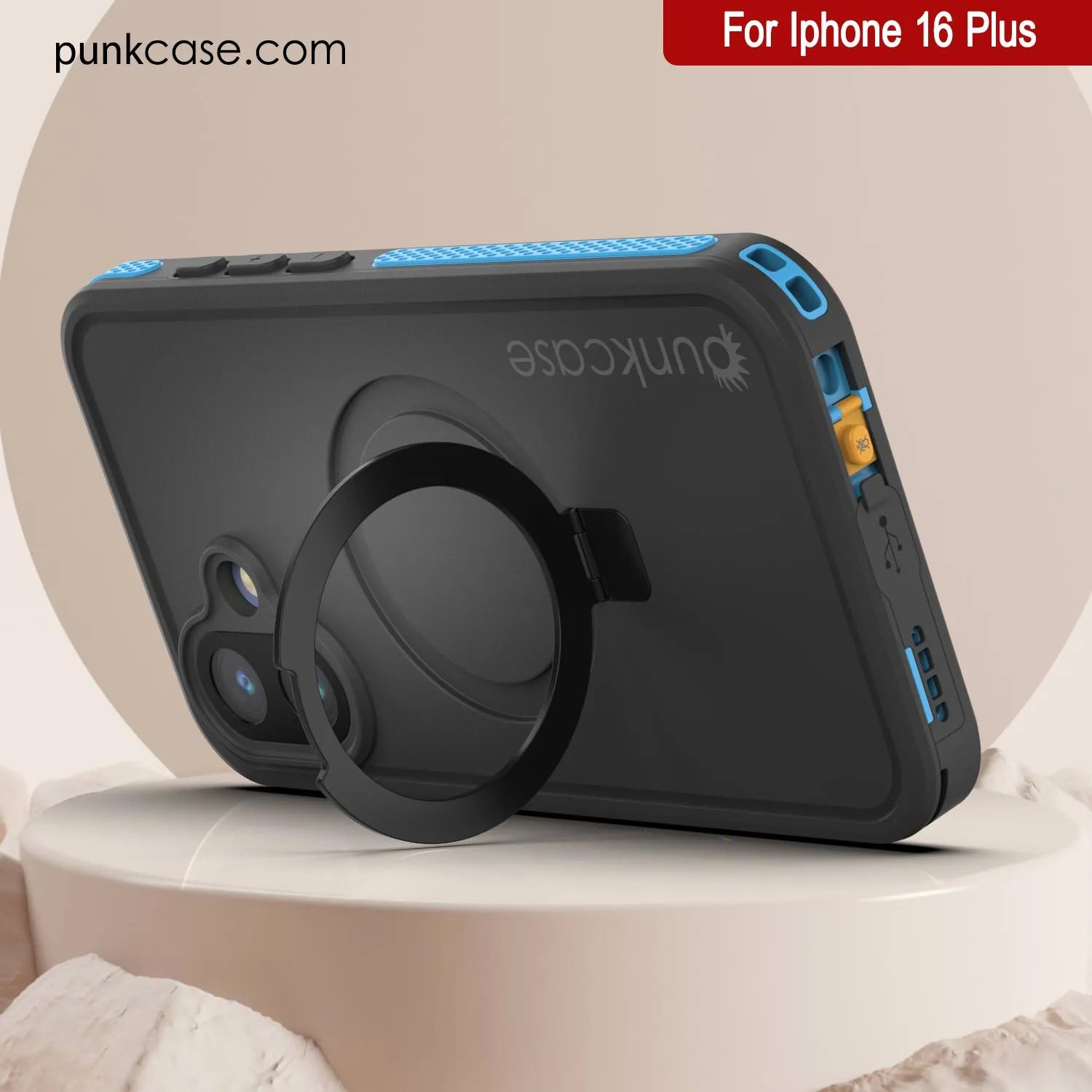 PunkCase for iPhone 16 Plus Waterproof Case [Kickstud 2.0 Seriess] Protective IP68 Certified Cover W/Screen Protector & Kickstand | Ultra Slim 360 Protection for iPhone 16 Plus (6.7") (Blue)