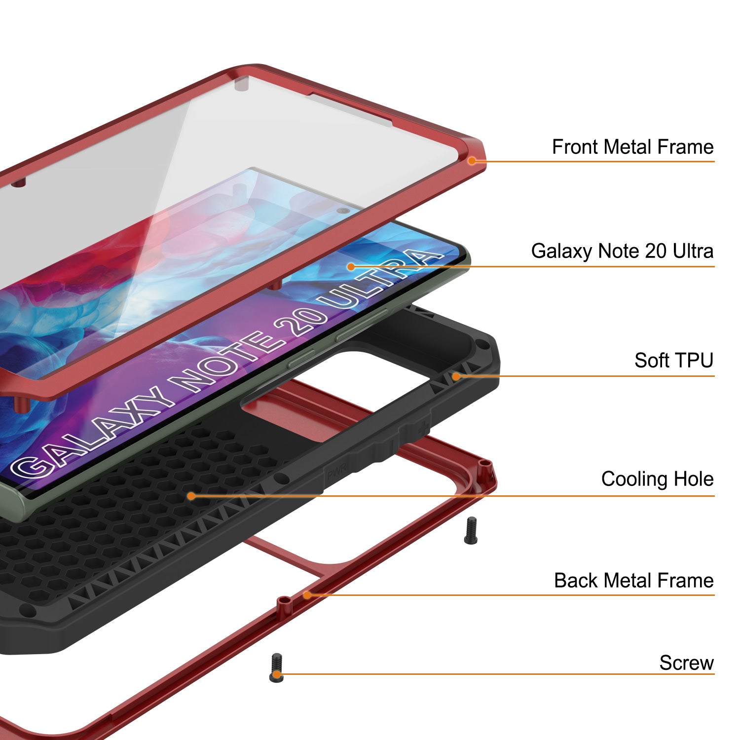 Galaxy Note 20 Ultra Case, PUNKcase Metallic Red Shockproof Slim Metal
