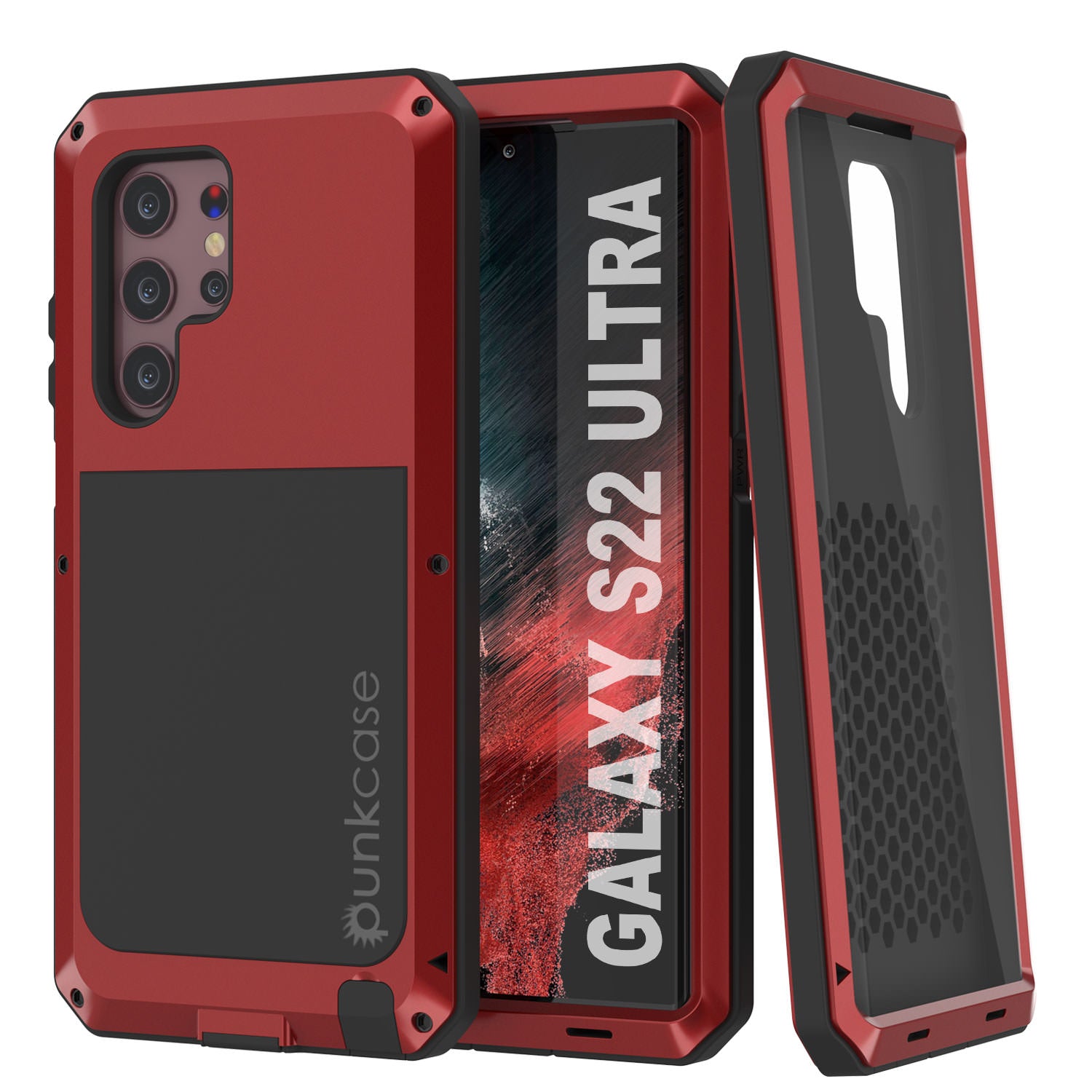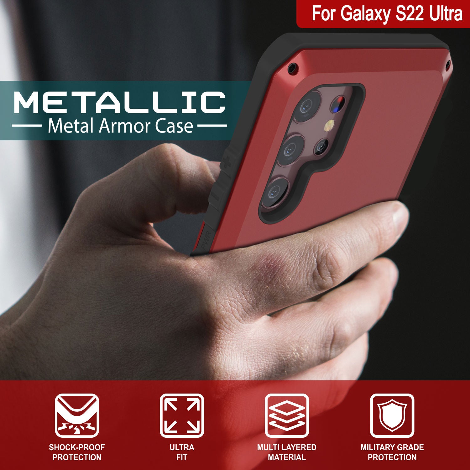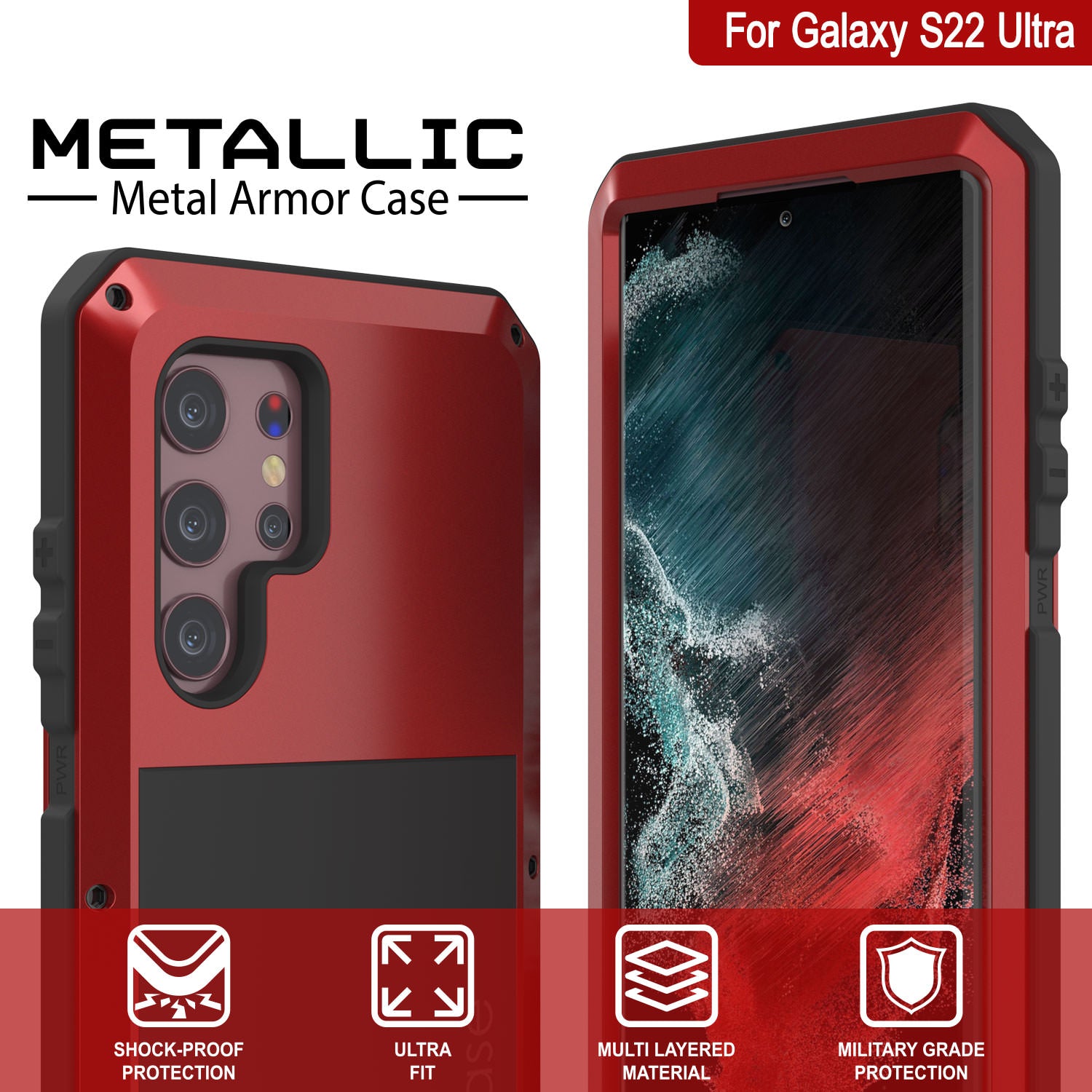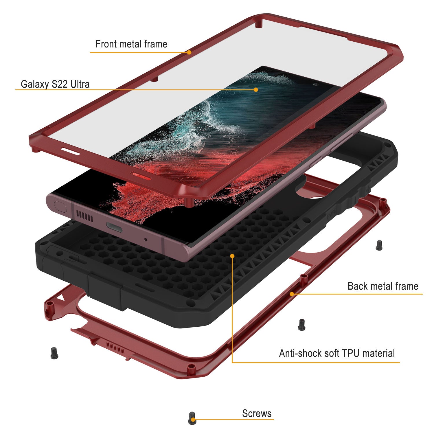 Galaxy S22 Ultra Metal Case, Heavy Duty Military Grade Rugged Armor Cover [Red]