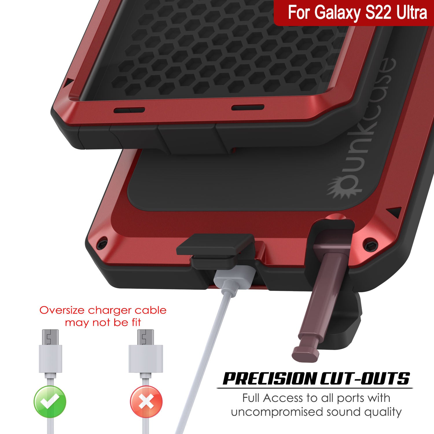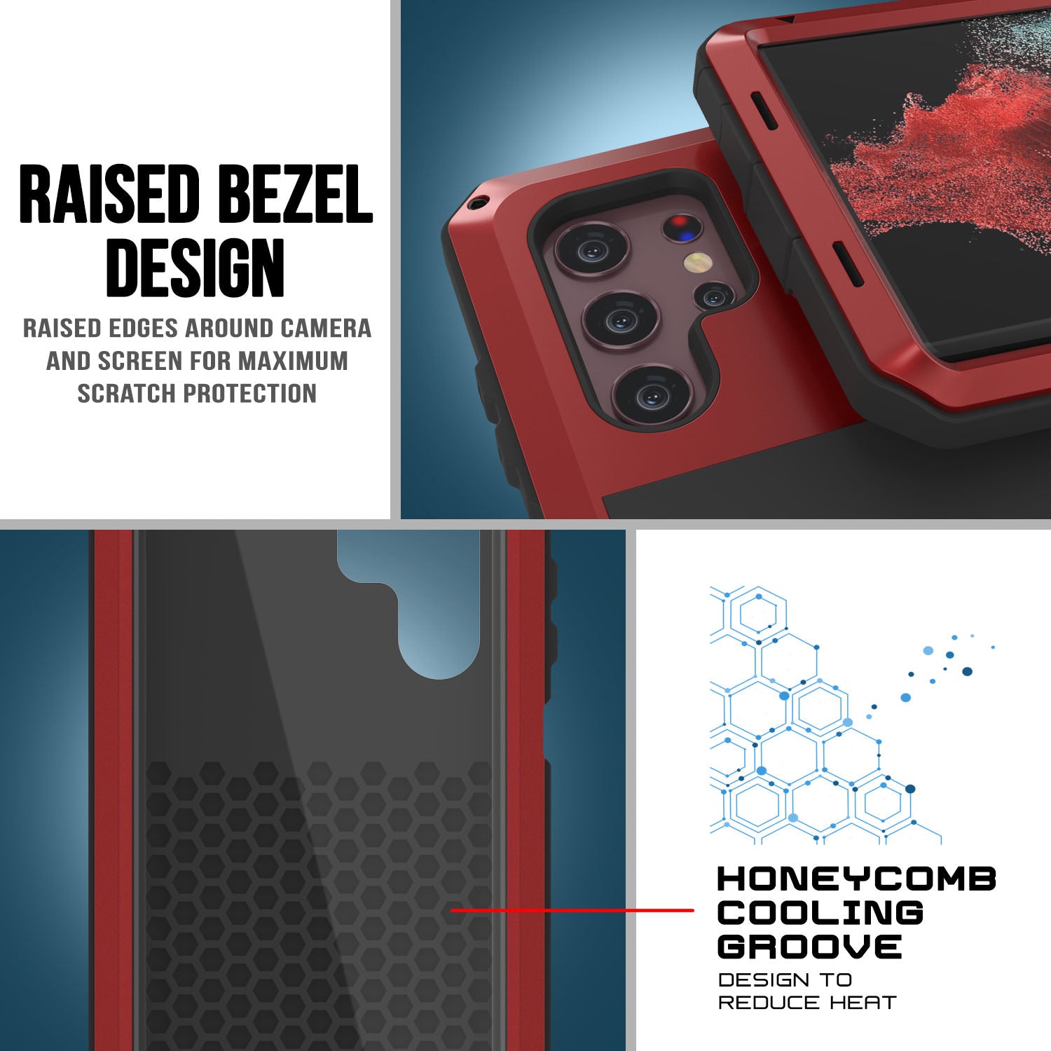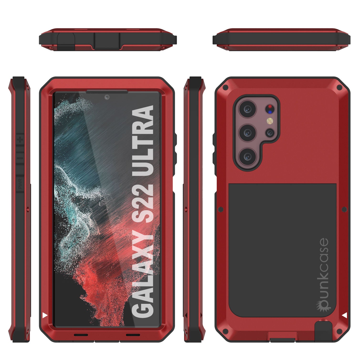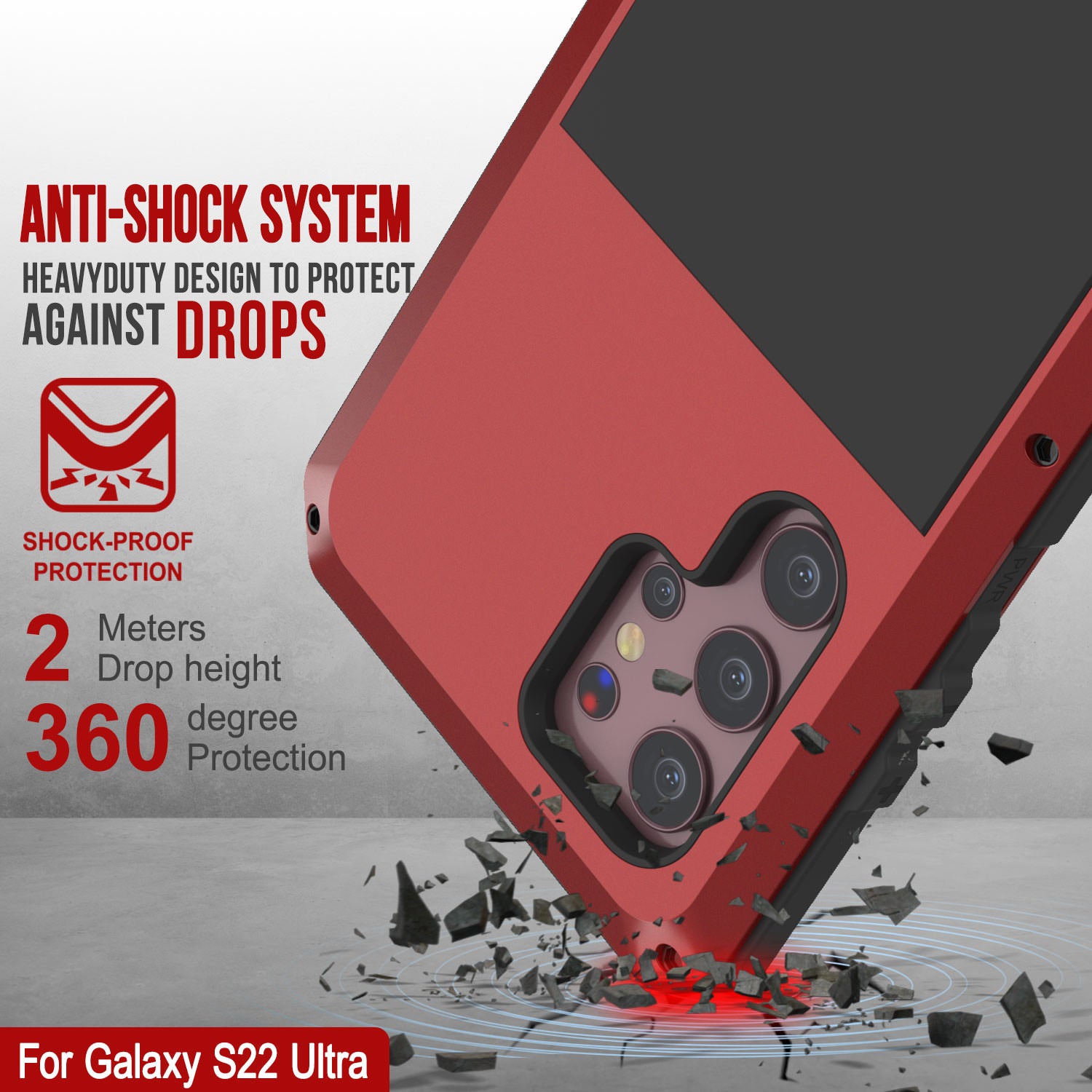 Galaxy S22 Ultra Metal Case, Heavy Duty Military Grade Rugged Armor Cover [Red]