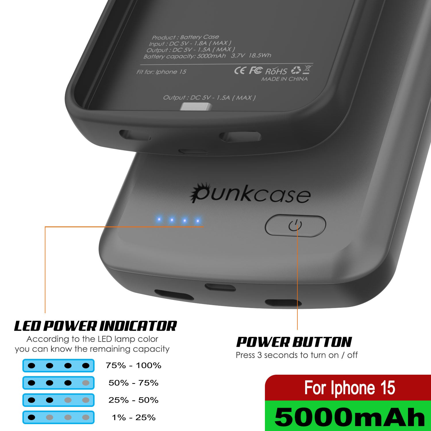 iPhone 15 Battery Case, PunkJuice 5000mAH Fast Charging Power Bank W/