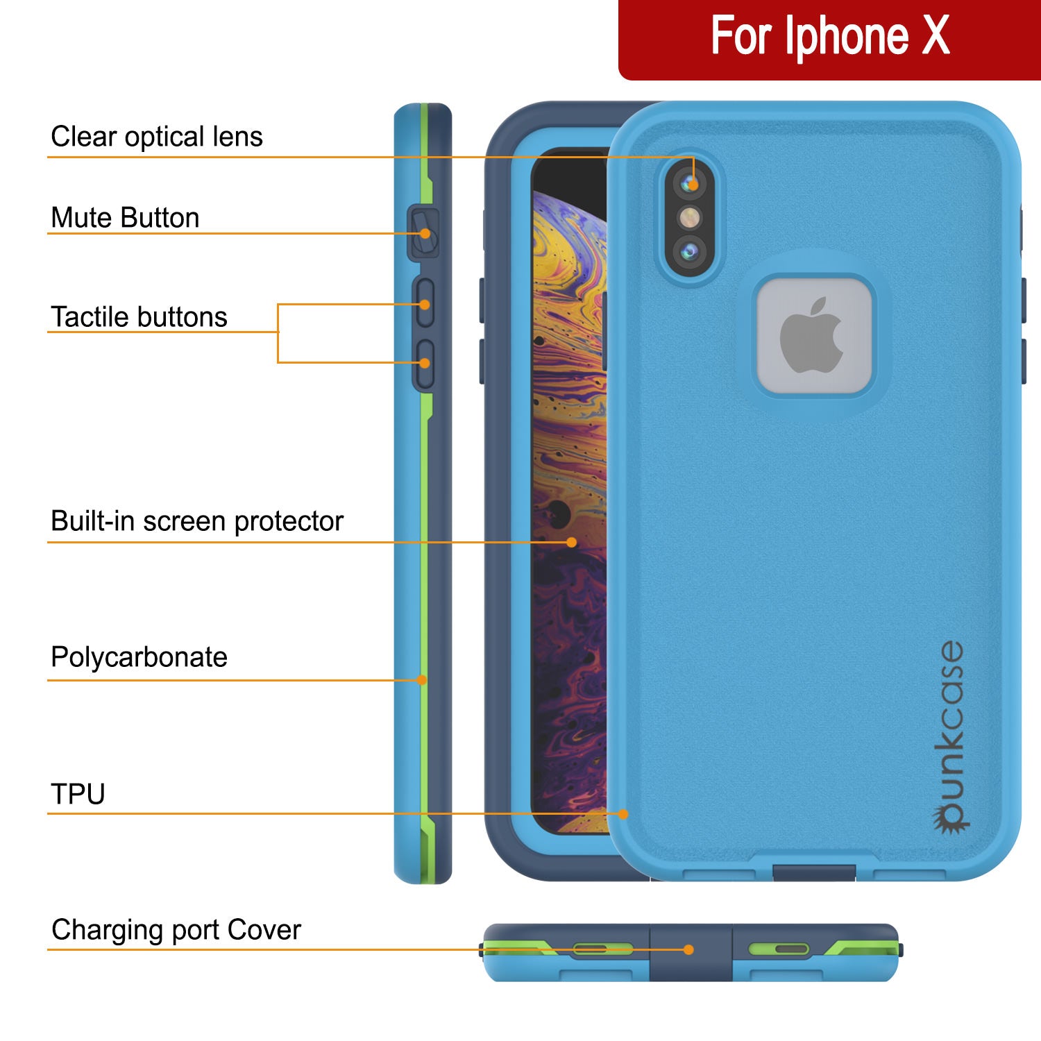 Punkcase iPhone X Waterproof Case [Aqua Series] Armor Cover [Blue]