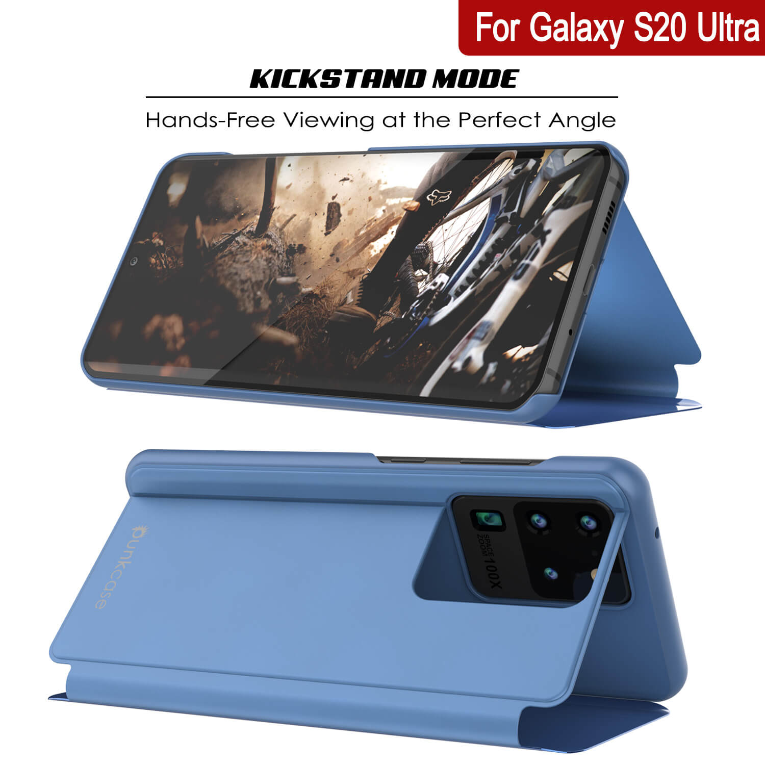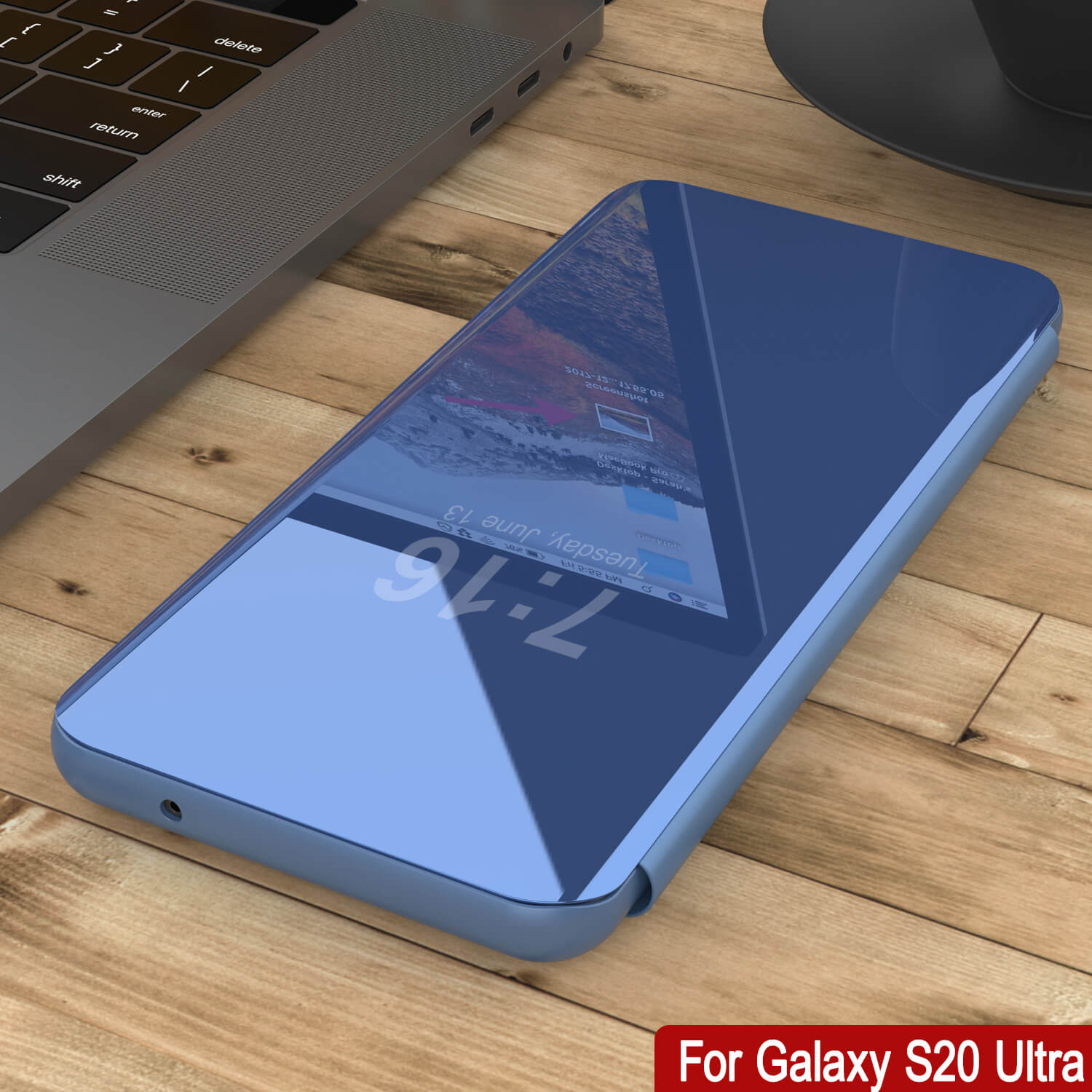 Punkcase Galaxy S20 Ultra Reflector Case Protective Flip Cover [Blue]