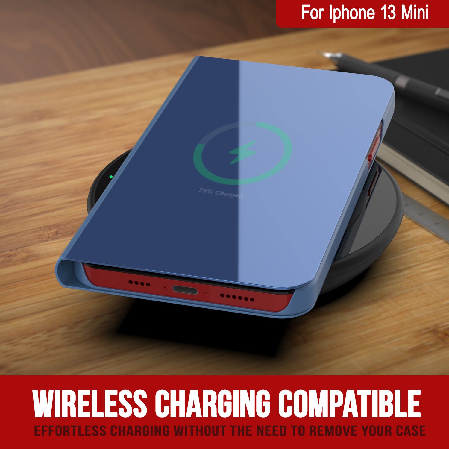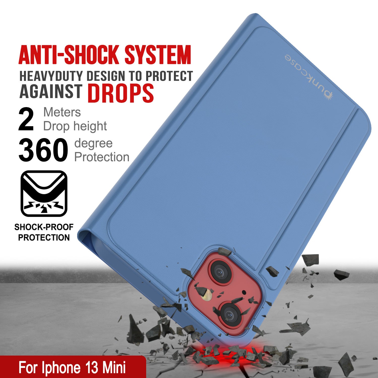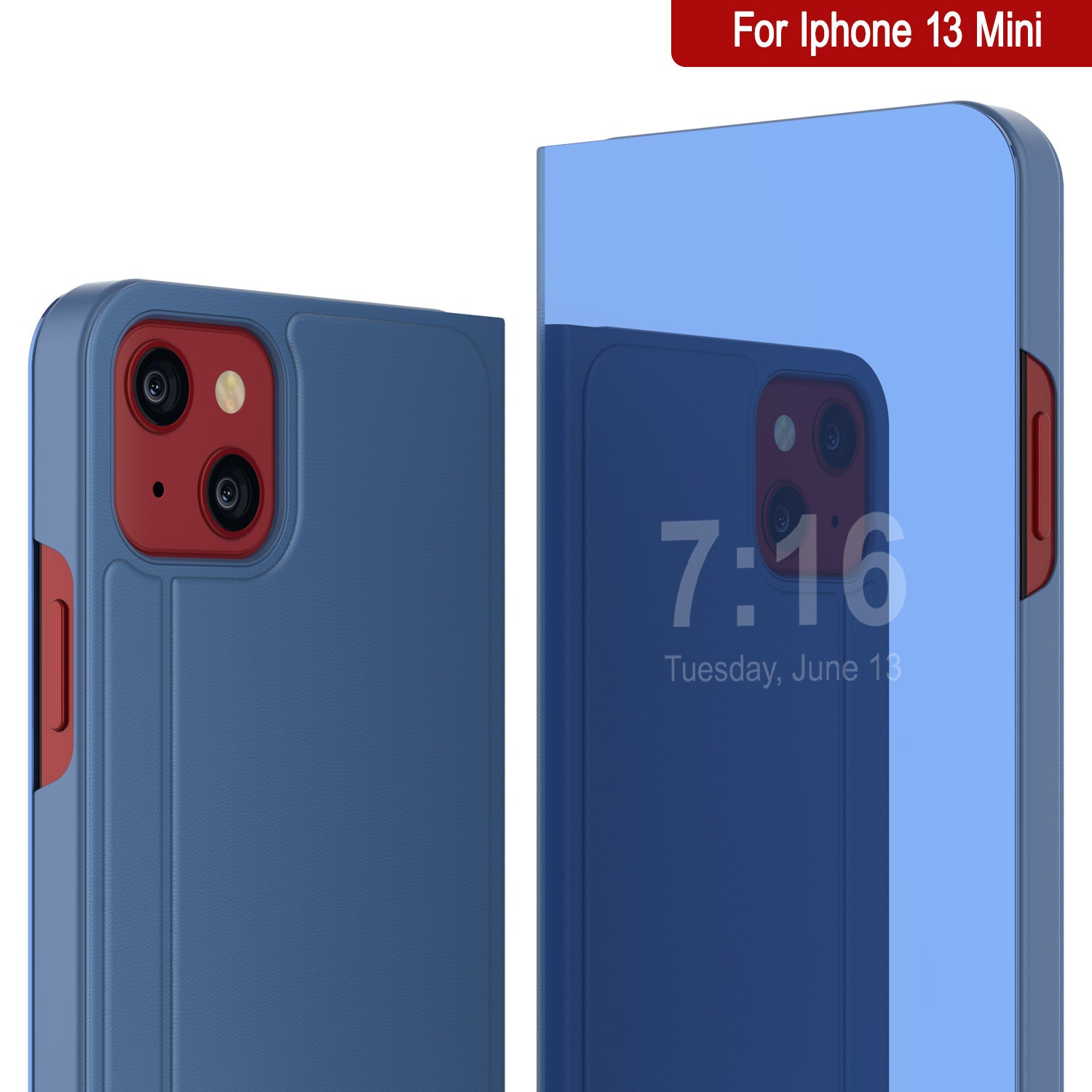 Punkcase iPhone 13 Mini Reflector Case Protective Flip Cover [Blue]