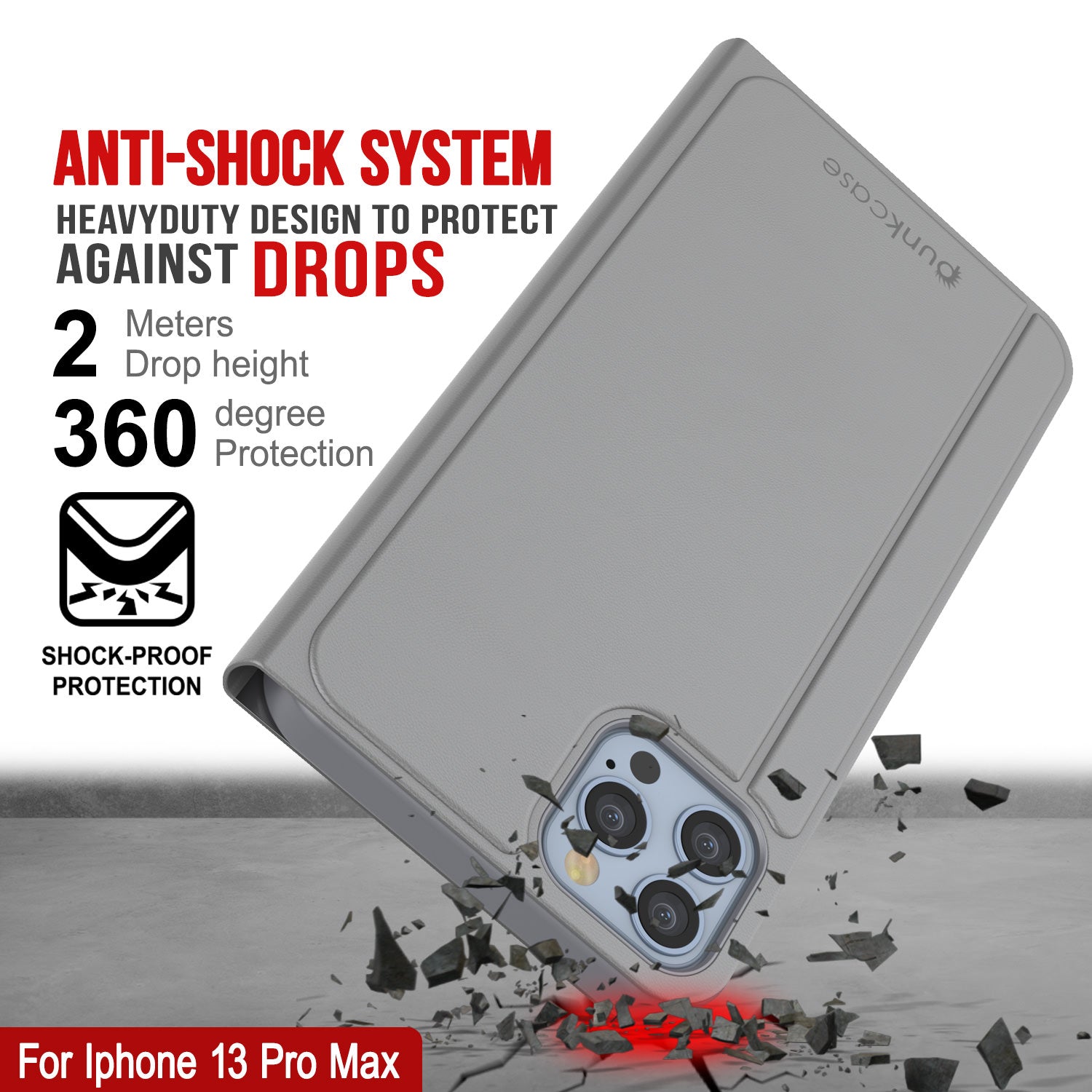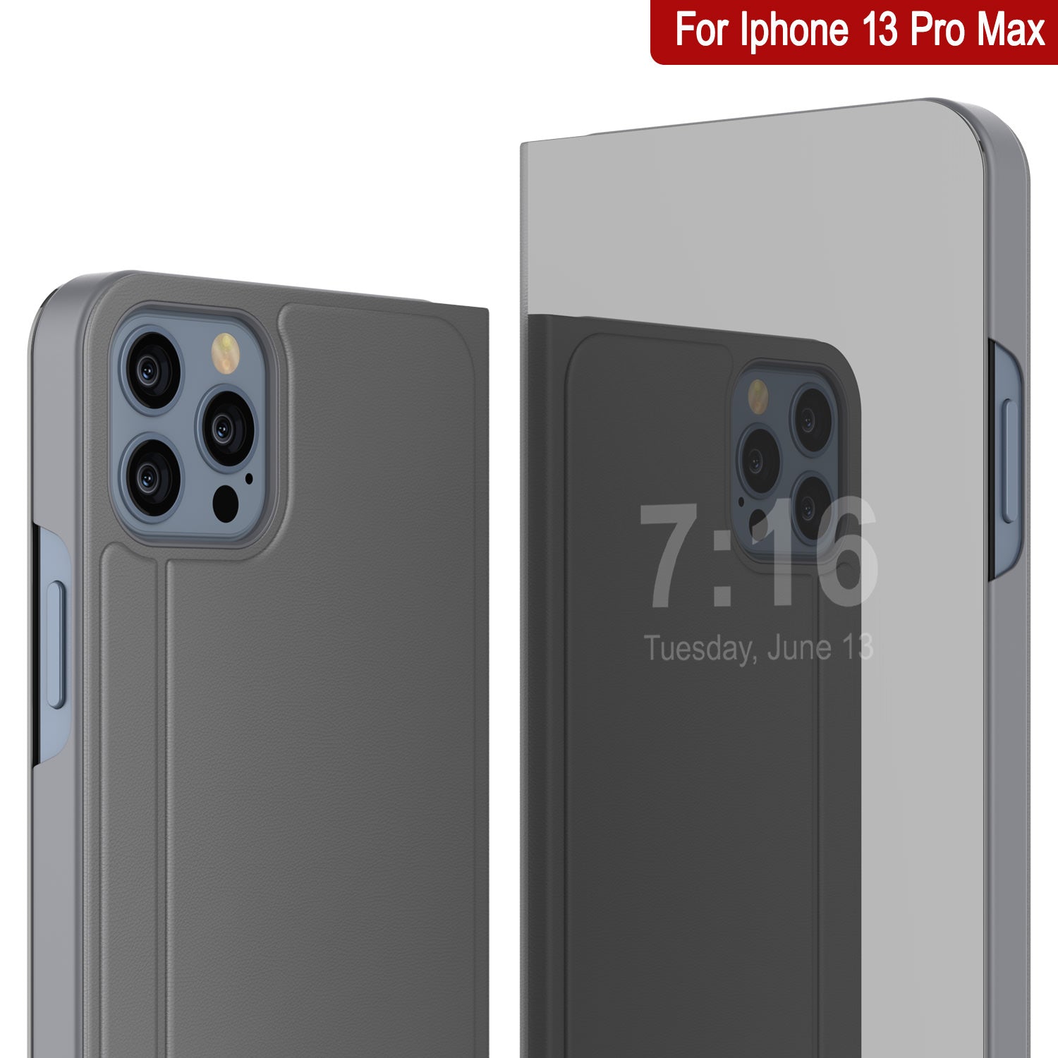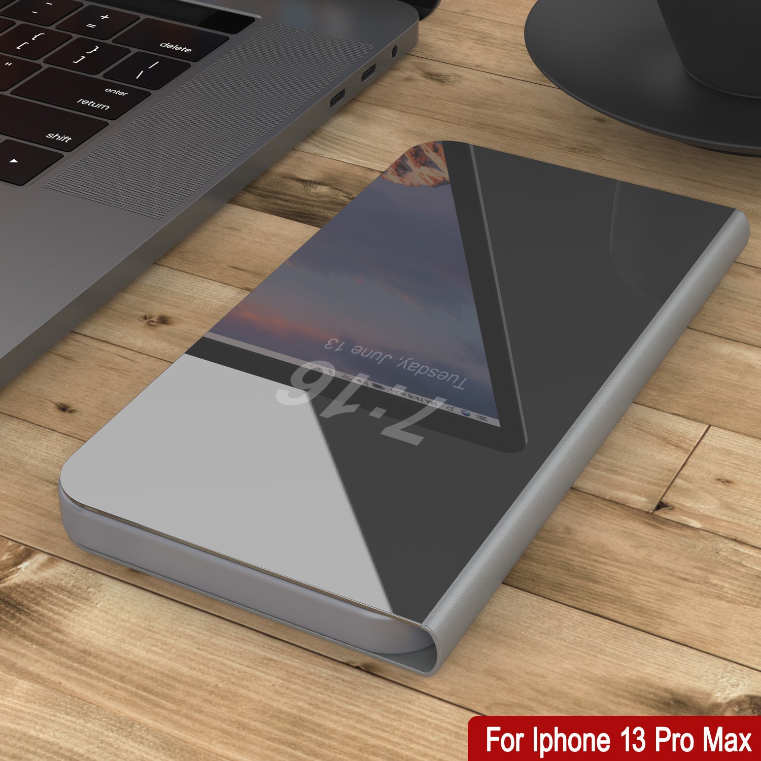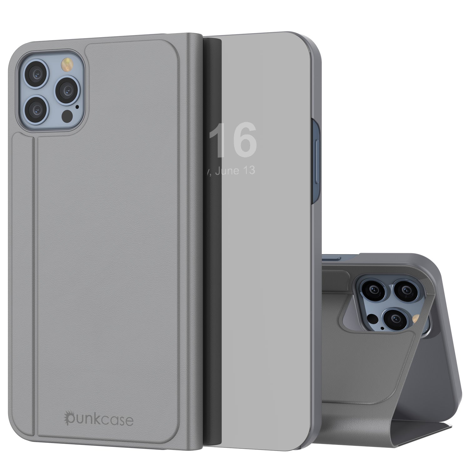 Punkcase iPhone 13 Pro Max Reflector Case Protective Flip Cover [Silve