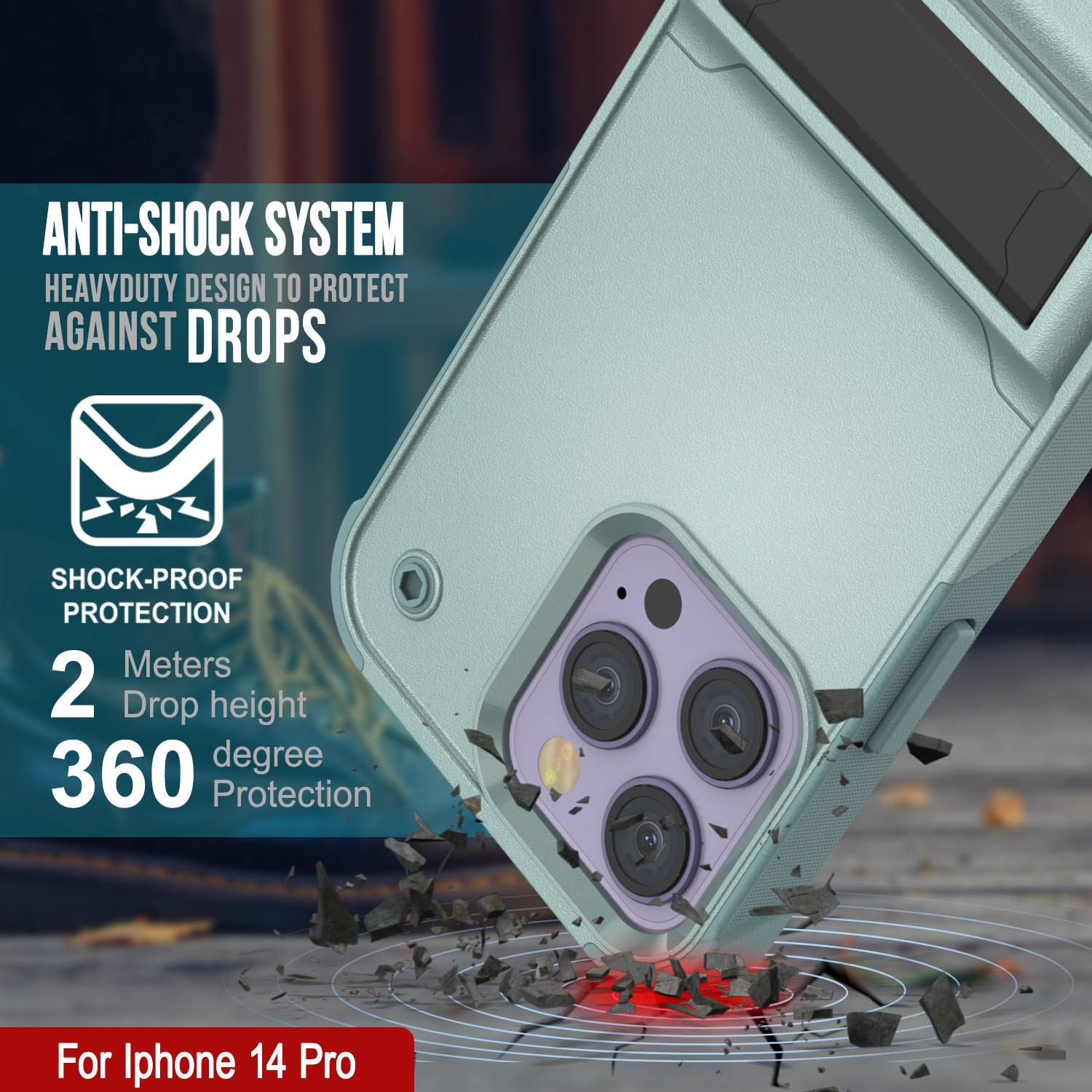 Punkcase iPhone 15 Pro Case [Reliance Series] Protective Hybrid Military Grade Cover W/Built-in Kickstand [Green]