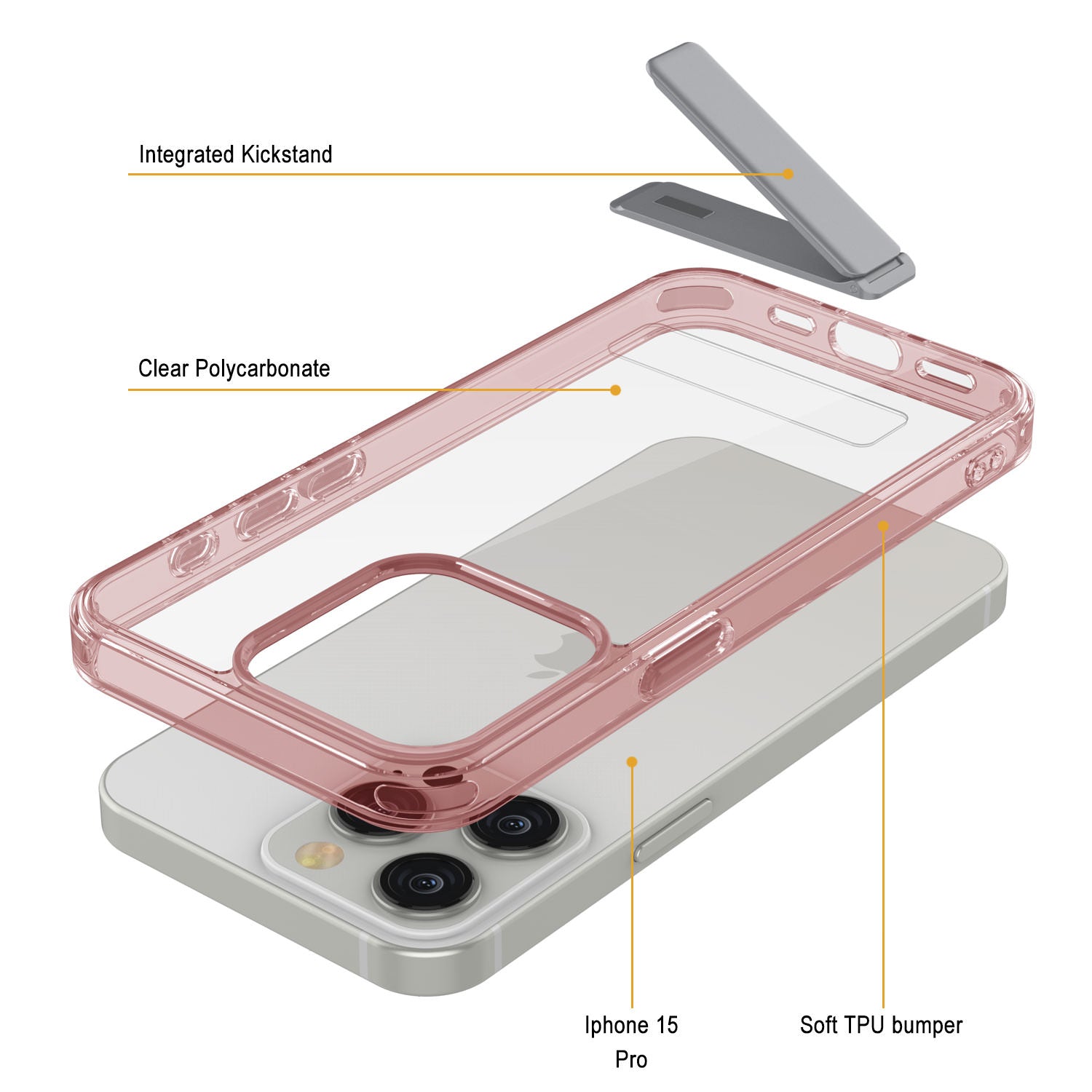 Punkcase iPhone 15 Pro Case with Kickstand [Crystal Kickstand Series] [Slim Fit] Clear Protective Non-Yellowing Hardcase Shell W/Soft TPU Rubber Bumper for iPhone 15 Pro (6.1") (2023)