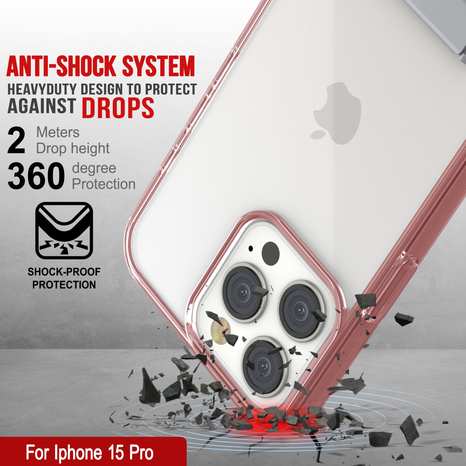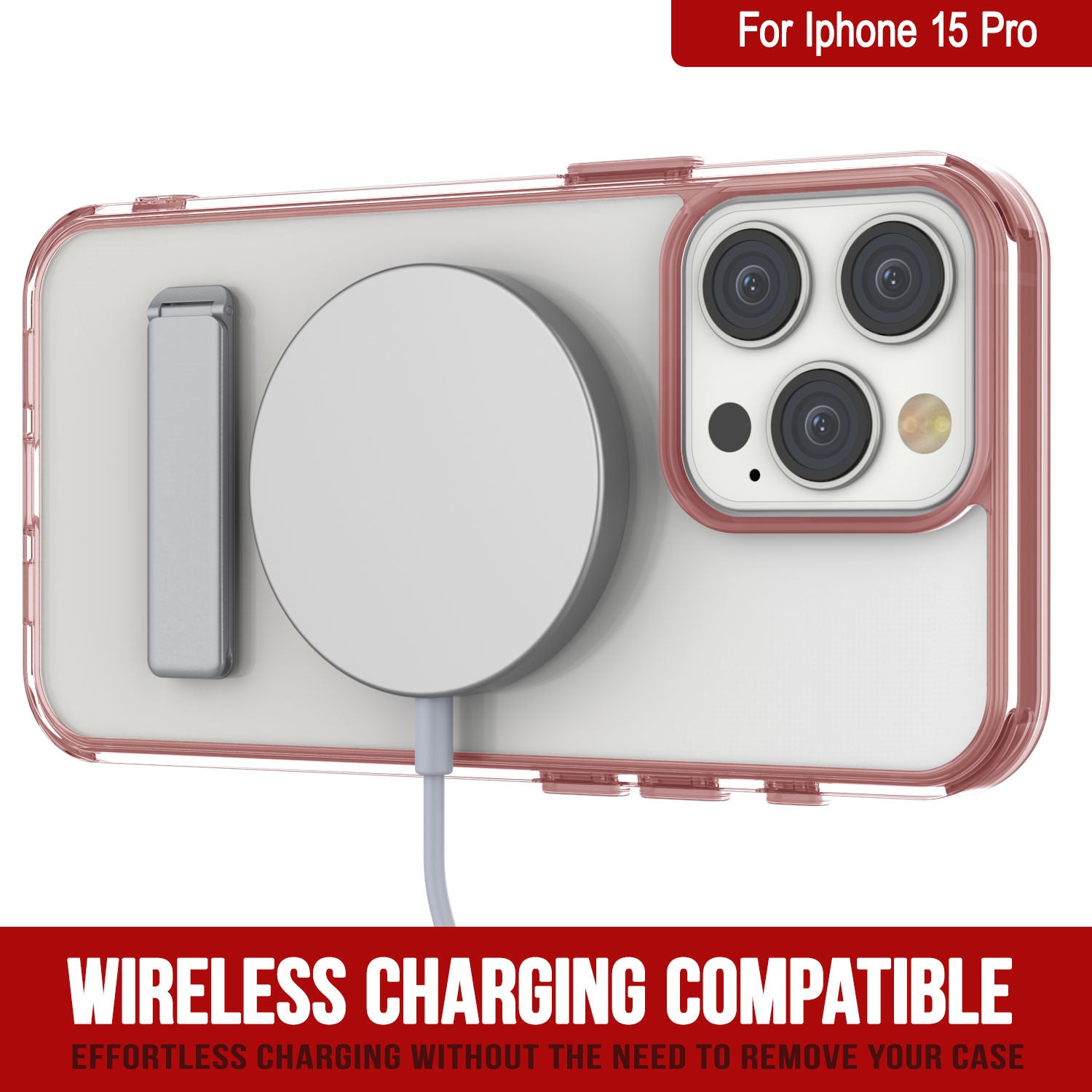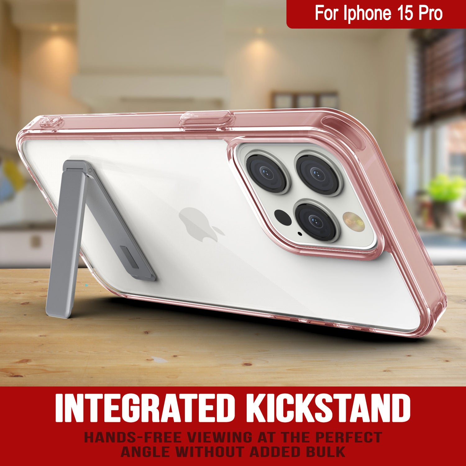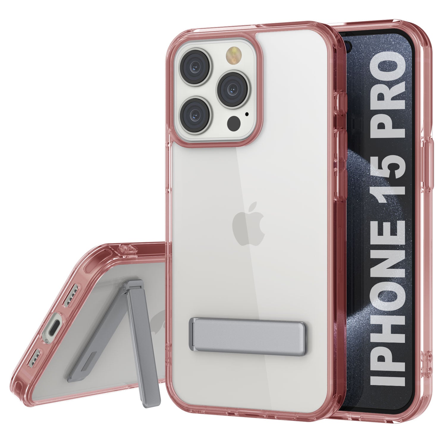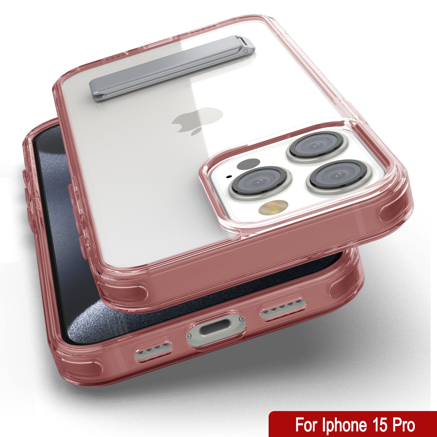 Punkcase iPhone 15 Pro Case with Kickstand [Crystal Kickstand Series] [Slim Fit] [Red]